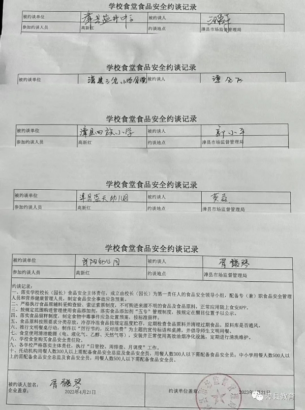 会上,县市场监管局党组成员、副局长高新红剖析了学校食堂管理易出问题的环节和原因,对校园食品安全工作进行了安排部署,并提出了明确要求。县教育局党组成员、副局长韩想成要求各学校要提高政治站位,克服困难、履职尽责,高度重视校园食品安全工作,持续巩固学生餐饮突出问题专项整治成效,全面落实各项管理措施。市场监督管理局食品股魏永涛就学校食堂食品安全“两个责任”分层分级包保工作督导中需要开展的具体工作进行了专题培训,并组织各学校现场签订了学校食堂食品安全约谈承诺书。