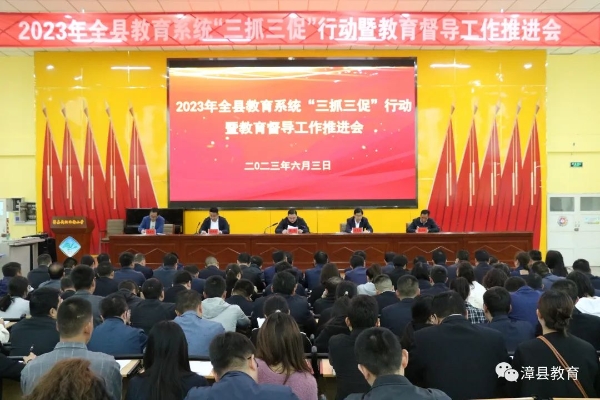 为强力推动教育系统“三抓三促”行动落地生根,进一步贯彻落实好全省教育工作“五大行动”“十大工程”和全市教育工作“五大行动”“八大工程”,以及中央、省市县关于教育督导工作部署要求,切实提高我县教育督导工作水平,2023年6月3日,漳县教育局组织召开了2023年全县教育系统“三抓三促”行动暨教育督导工作推进会议。会议由定西市教育局驻漳县督学、漳县教育局党组书记、局长赵刚主持。