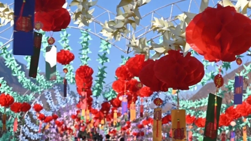 园内建有十二生肖木雕,栩栩如生,守护着牡丹园。