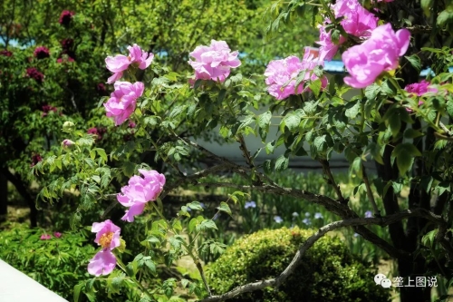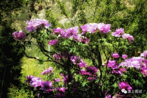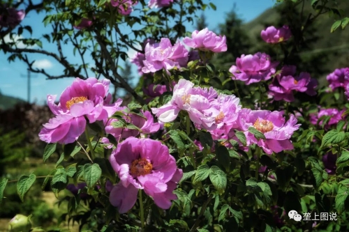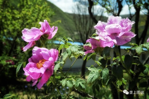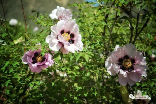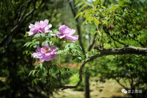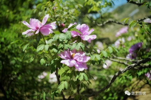 贵清山下,龙川河畔紫斑牡丹观赏粉色牡丹