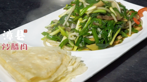 漳县腊肉韭菜选用优质的猪肉 再配以当地韭菜进行炒制而成 在炒制过程中 腊肉的油脂会释放出来 与韭菜的味道相互融合 产生一种独特的鲜香味 漳县腊肉韭菜口感鲜美、香气四溢 是一道色香味俱佳的美食 吃的时候用薄饼卷起来 那种美味填满整个口腔的感觉 真的是只可意会,不可言表的 一口鲜美谁能抗拒得了