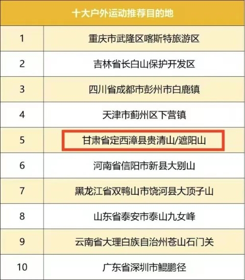 重磅发布!漳县贵清山/遮阳山荣获全国十大户外运动推荐目的地! |