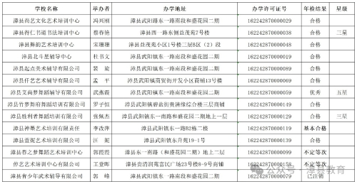 根据《中华人民共和国民办教育促进法》和《定西市教育局关于转发做好各级各类民办学校2023年度年检工作的通知》要求,为进一步加强全县民办幼儿园、校外培训机构管理,切实规范民办幼儿园、校外培训机构办学行为,县教育局组织人员对全县5所民办幼儿园、11所校外培训机构进行了年检,2所校外培训机构因取得办学许可证不满一年未参加年检,1所校外培训机构因提出注销申请未进行年检。现将县级年检结果公告如下,最终年检结果以市教育局复检后的公告为准。