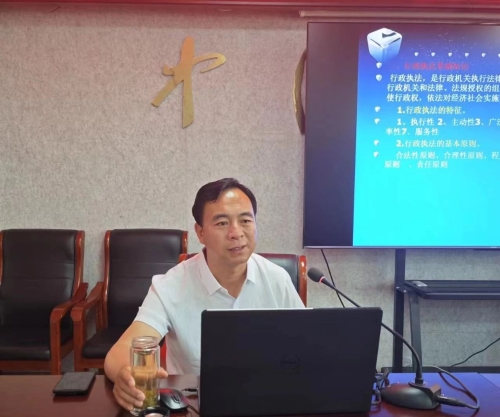本次培训班邀请了定西市司法局行政执法协调监督科科长田润鹏、普法与依法治理科张祥科长做专题授课。田润鹏科长以“突出问题导向,提升行政执法能力”为主题,重点讲解了国务院提升行政执法质量三年行动计划相关内容、行政执法基础知识,深入解析了行政执法中存在的问题和不足,就如何规范行政执法程序、整治纠正违法执法行为、提升行政执法能力、健全完善行政执法的监督机制等工作做出详细指导;张祥科长以“坚持以习近平法治思想为引领,全力推动“八五”普法工作取得新成效”为题讲解了法治宣传教育的历程和意义、主要内容、突出成效等;牛利民同志详细解读了《行政处罚法》《行政处罚听证程序管理规定》,培训中还学习了《行政强制法》《行政许可法》以及新修订《行政复议法》等内容。