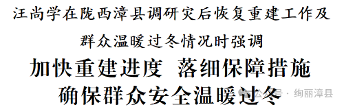汪尚学深入陇西县漳县调研灾后恢复重建工作及群众温暖过冬情况 |
